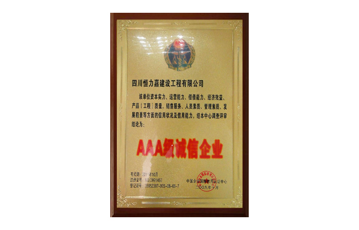• 2009年10月AAA級誠信企業